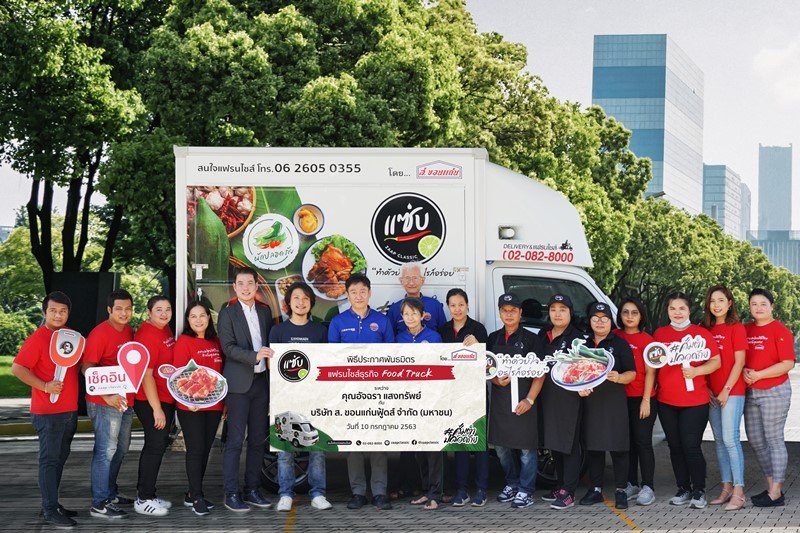 นายจรัสภล รุจิราโสภณ (ที่ 6 จากซ้าย) ประธานเจ้าหน้าที่บริหาร ธุรกิจอาหารพร้อมรับประทาน (RTE-QSR) บริษัท ส. ขอนแก่นฟู้ดส์ จำกัด (มหาชน) หรือ SORKON แต่งตั้ง คุณอัจฉรา แสงทรัพย์ (ที่ 8 จากซ้าย) เป็นแฟรนไชส์ฟู้ดทรัค (food truck) แบรนด์ ‘แซ่บคลาสสิก’ โดยนับเป็นแฟรนไชส์ฟู้ดทรัคคันที่ 3 หลังได้รับกระแสตอบรับจากคู่ค้าที่ให้ความสนใจเป็นจำนวนมาก ด้วยงบลงทุนไม่สูงและได้รับประโยชน์จากผลตอบแทนการลงทุนที่คุ้มค่า มีโอกาสคืนทุนภายในระยะเวลาไม่ถึง 2 ปี นอกจากนี้ ยังเป็นการยกระดับคุณภาพอาหาร Street food ให้ถูกสุขลักษณะ ปลอดภัย เพื่อให้ลูกค้าได้รับประทานอย่างมั่นใจ สะดวกเข้าถึงง่าย ตามวิสัยทัศน์การเป็นบริษัทผลิตอาหารไทยเพื่อทุกชีวิตที่ดีขึ้น